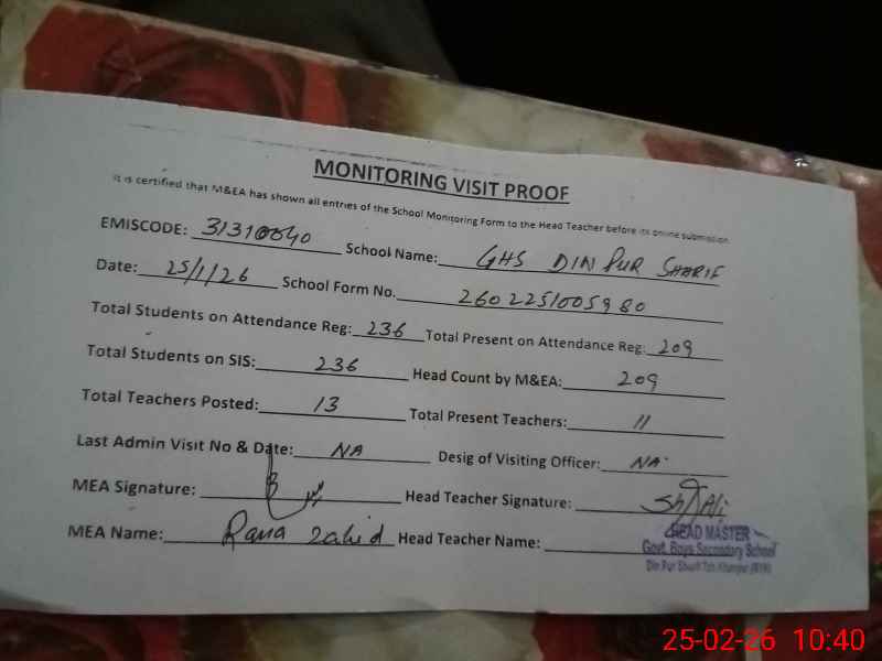 | EMIS Code: 31310040 | Name of School: GHS DINPUR SHARIF | |||