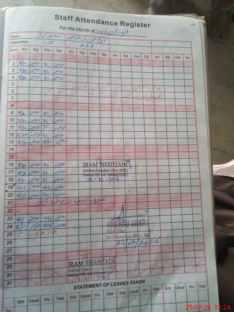 | 38**** | Ro**** Ko**** | NAIB QASID | Regular | 0 | 0 | 0 | 0 | 0 | 0 | 0 | 0 | 0 | Casual |