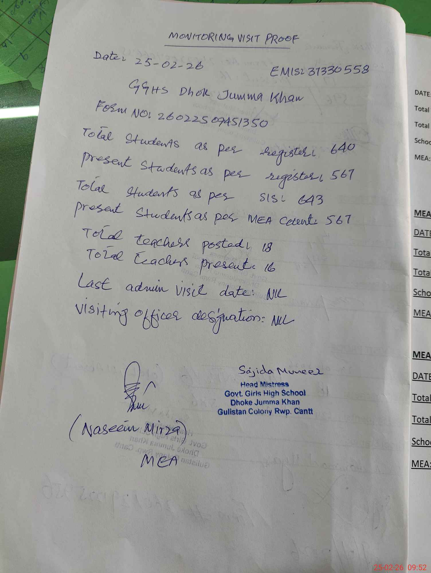 | EMIS Code: 37330558 | Name of School: GGHS DHOK JUMMA KHAN | |||
