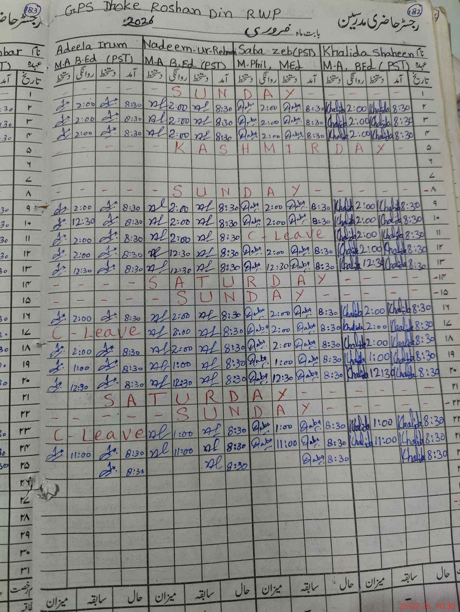 | Leave | Duty | Absent | Maternity | Medical | Ex- Pak |