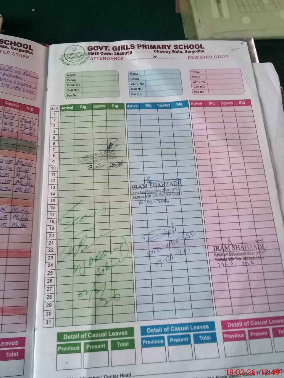 | CNIC | Full Name | Designation | R/C | Absence During Last Calender Month |