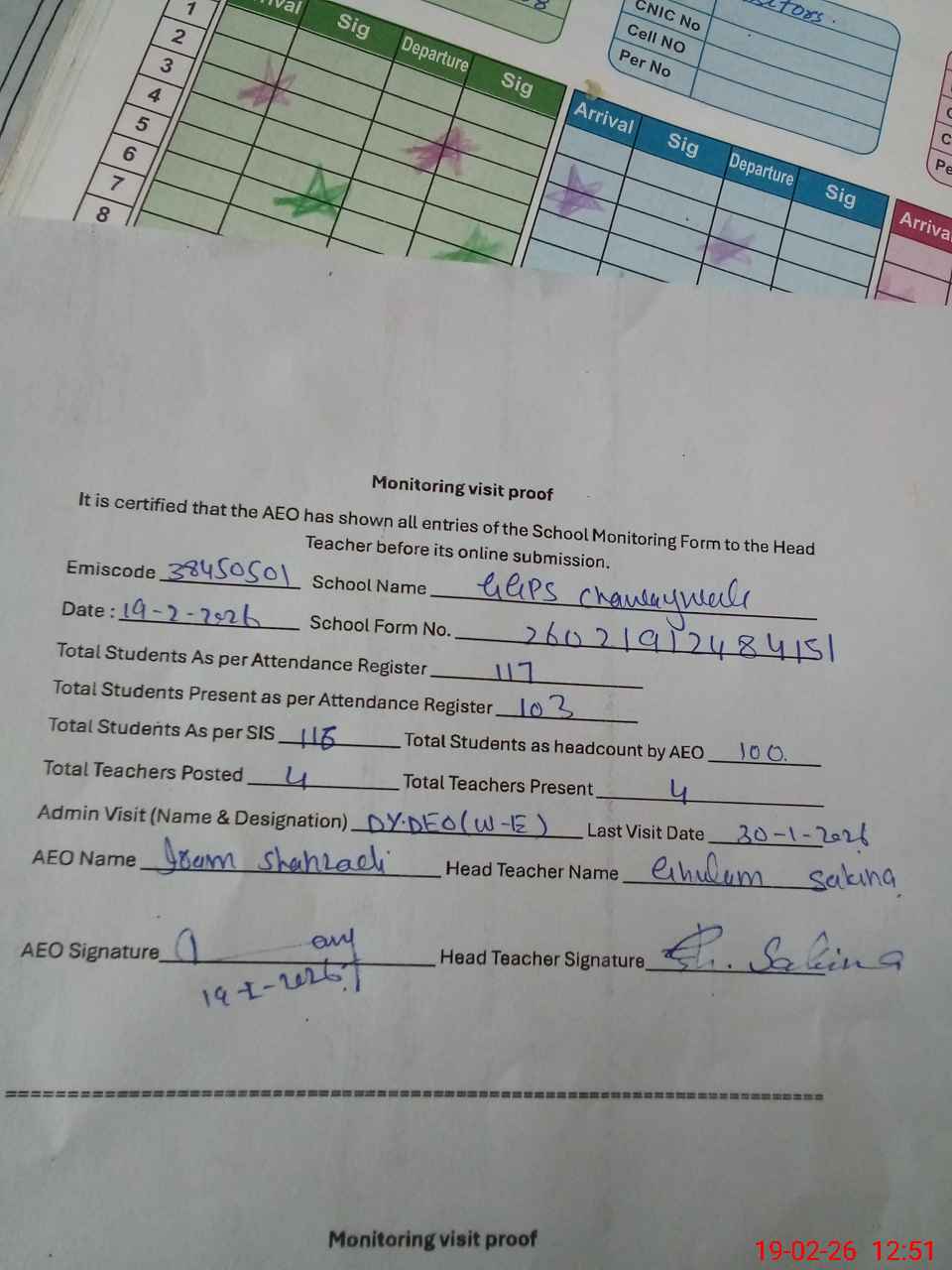 | Attendance Register | Head Teacher | MEA with School | Visit Proof |