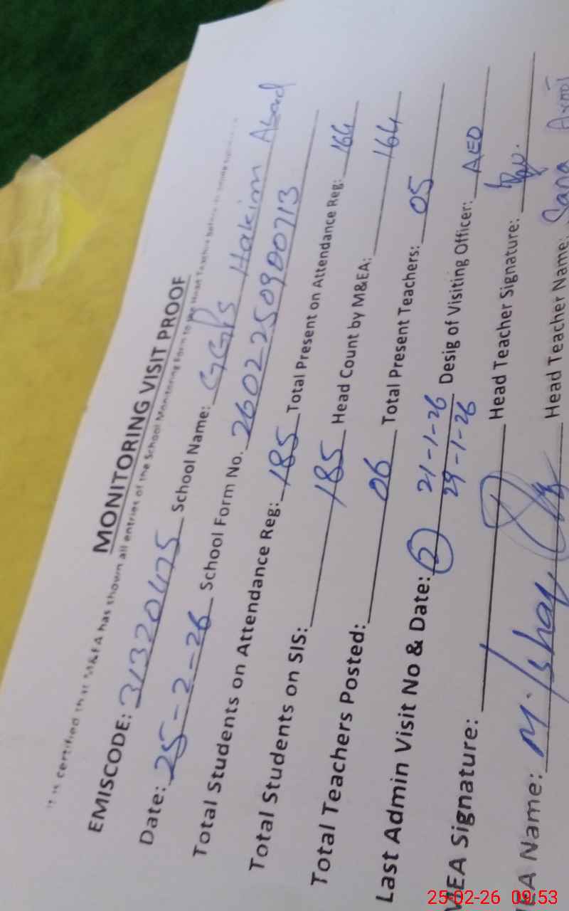 | EMIS Code: 31320475 | Name of School: GGPS HAKIM ABAD | |||