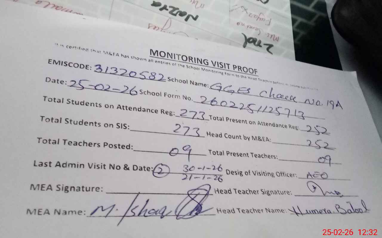| Attendance Register | Head Teacher | MEA with School | Visit Proof |