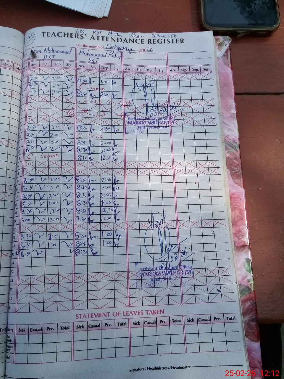 | Name: No**** Mu**** Designation: (School Headmaster's/Headmistress's) PST Phone/Cell Number: 03**** |