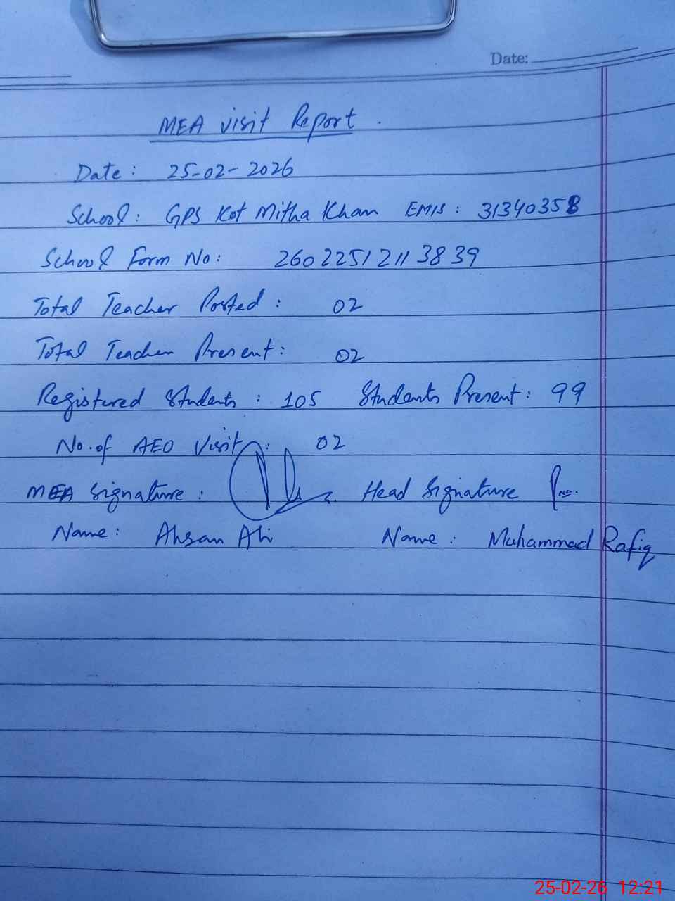 | EMIS Code: 31340358 | Name of School: GPS KOT MITHA KHAN | |||