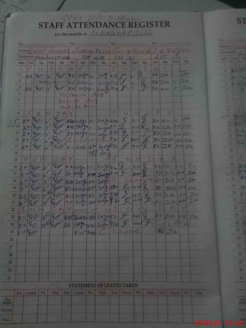 | Leave | Duty | Absent | Maternity | Medical | Ex- Pak |
