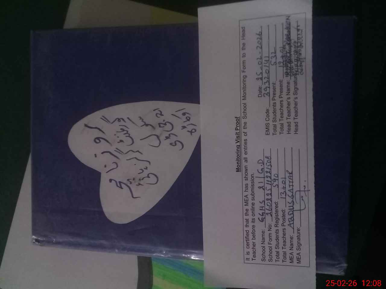 | Attendance Register | Head Teacher | MEA with School | Visit Proof |