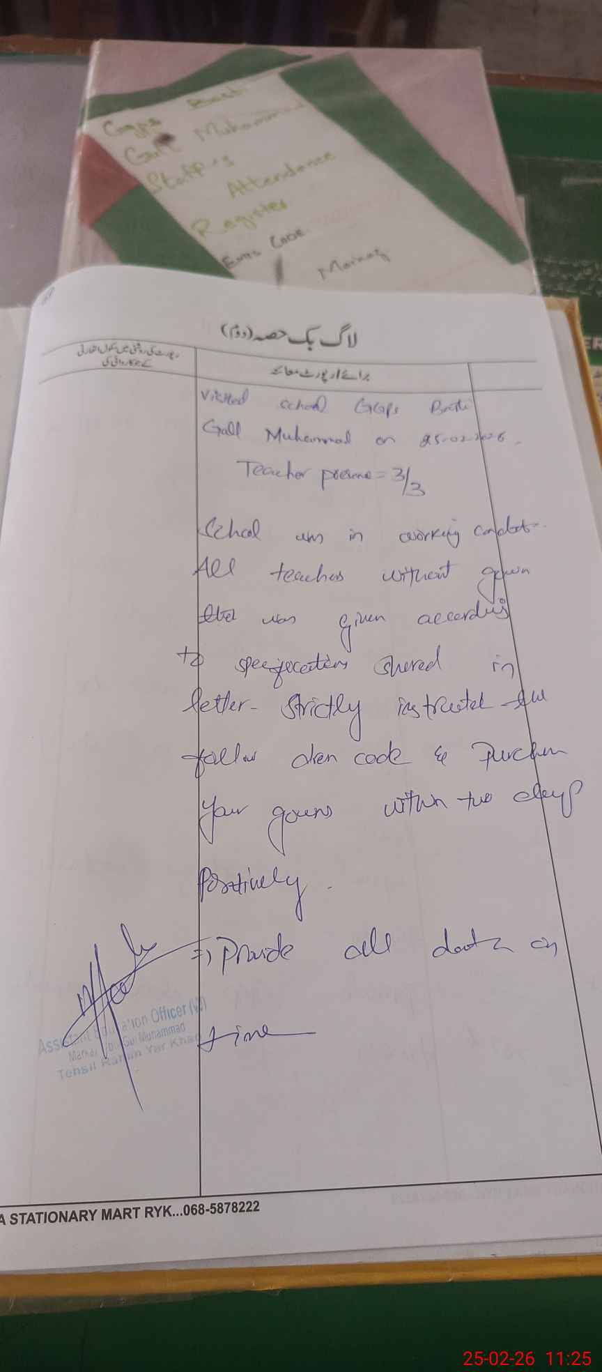 | Name: SH**** RA**** Designation: (School Headmaster's/Headmistress's) PST/PTC/JV Phone/Cell Number: 03**** |