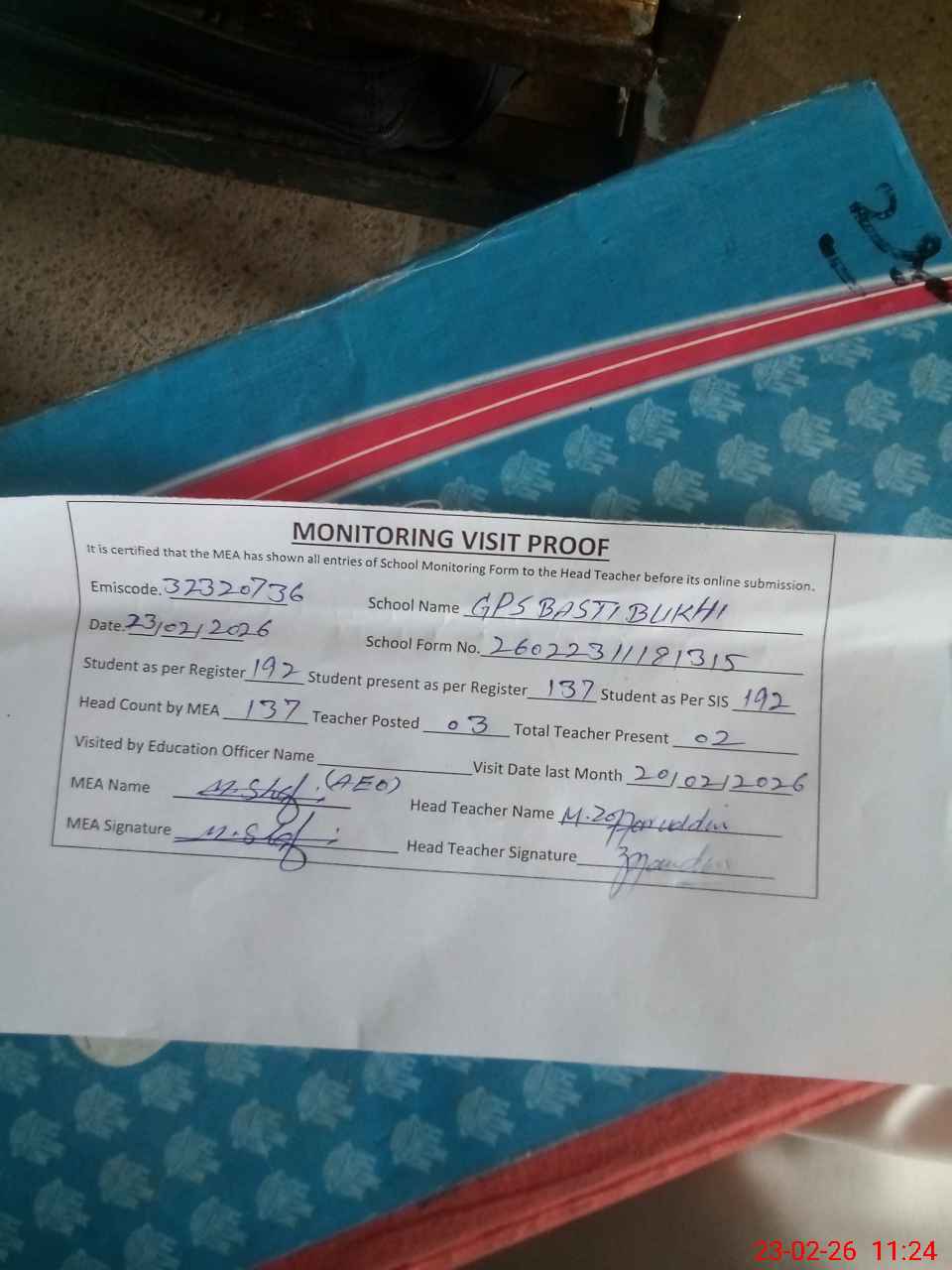 | EMIS Code: 32320736 | Name of School: GPS BASTI BUKHI | |||