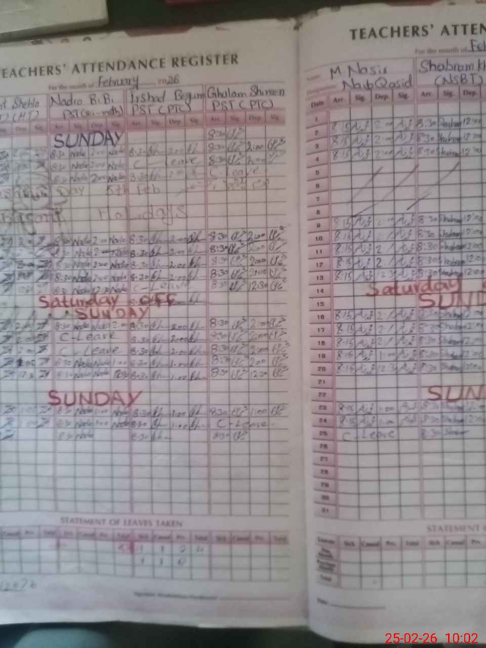 | Leave | Duty | Absent | Maternity | Medical | Ex- Pak |