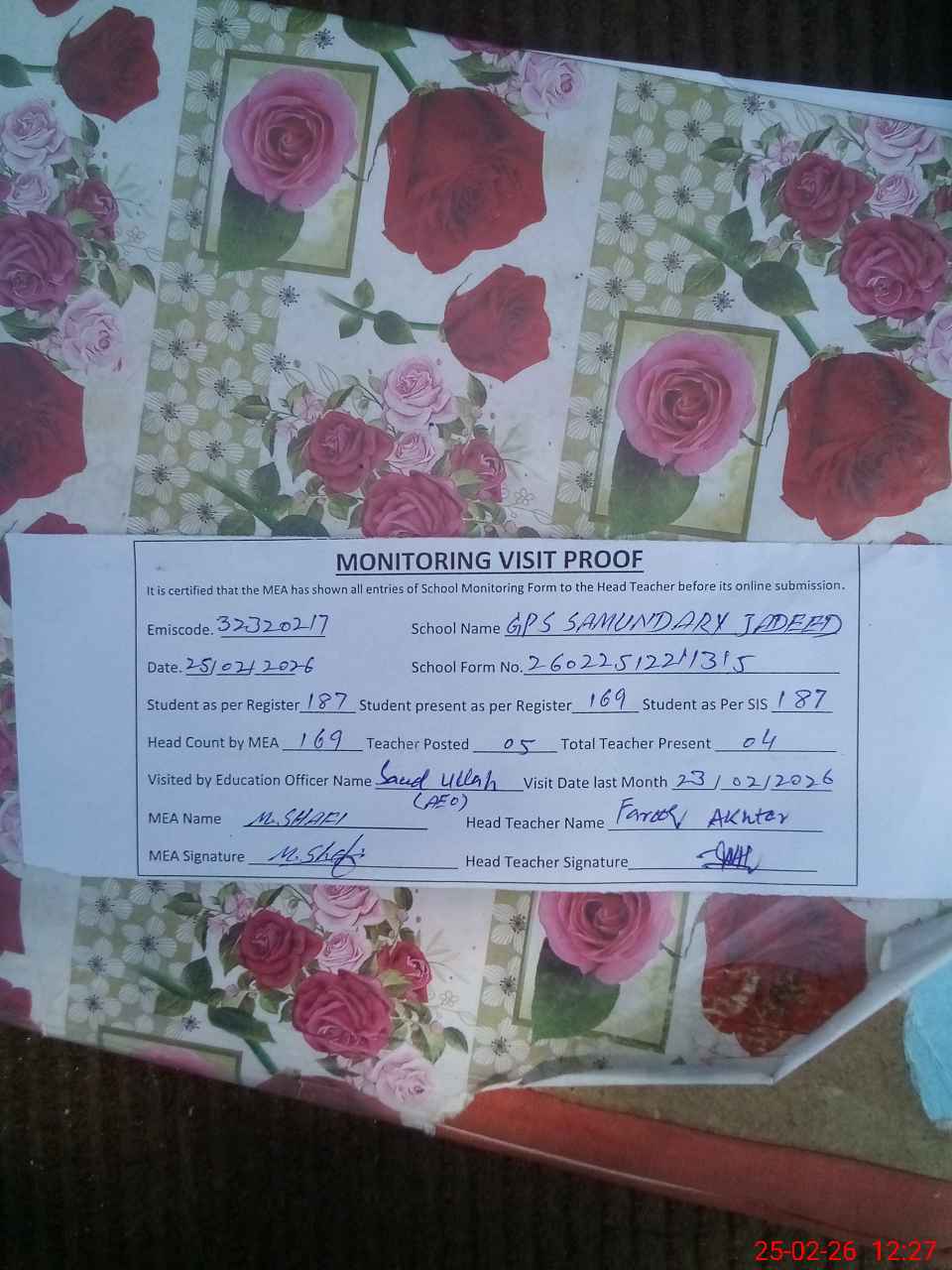 | EMIS Code: 32320217 | Name of School: GPS SAMUNDARY JADEED | |||