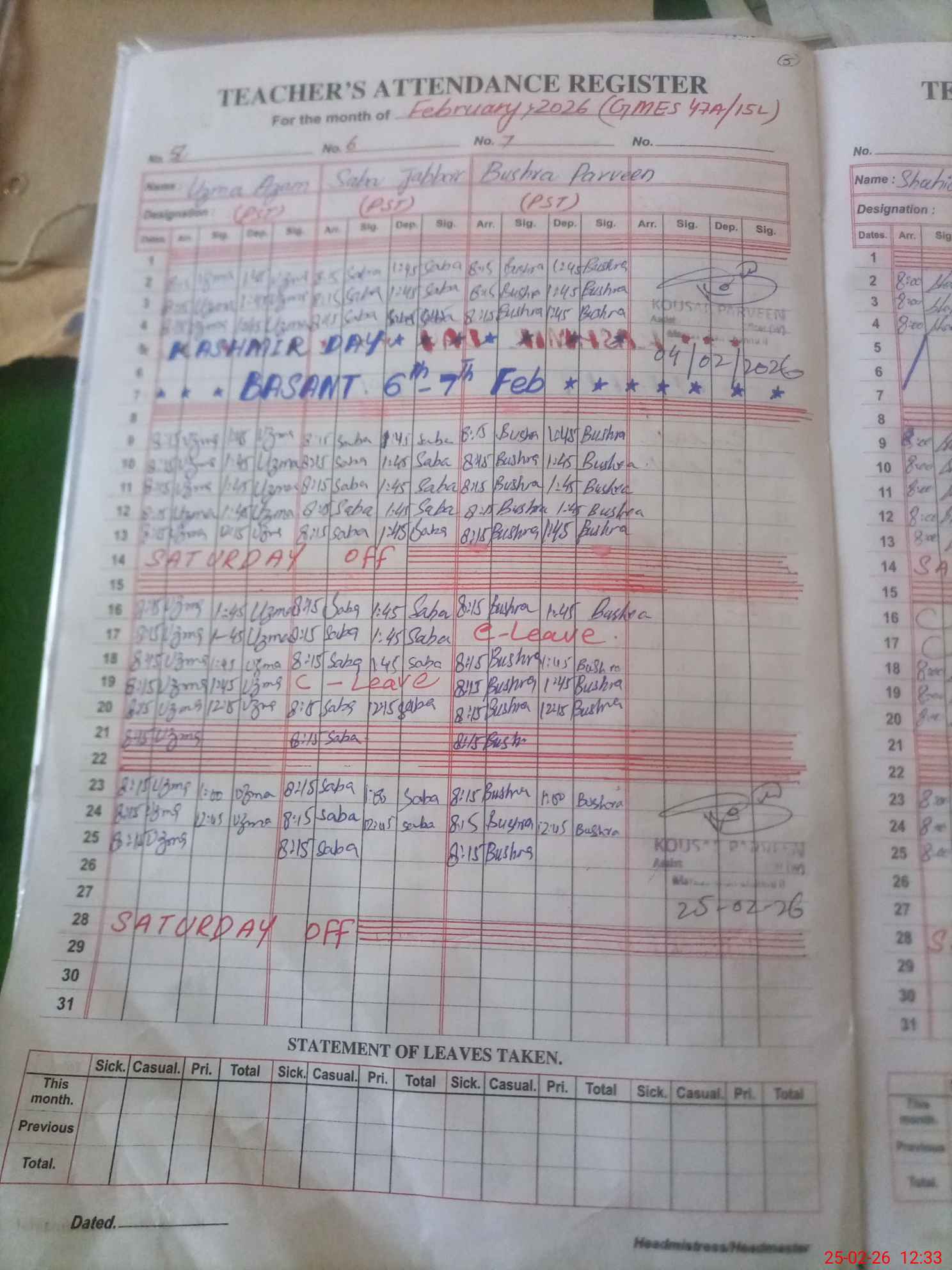 | Leave | Duty | Absent | Maternity | Medical | Ex- Pak |