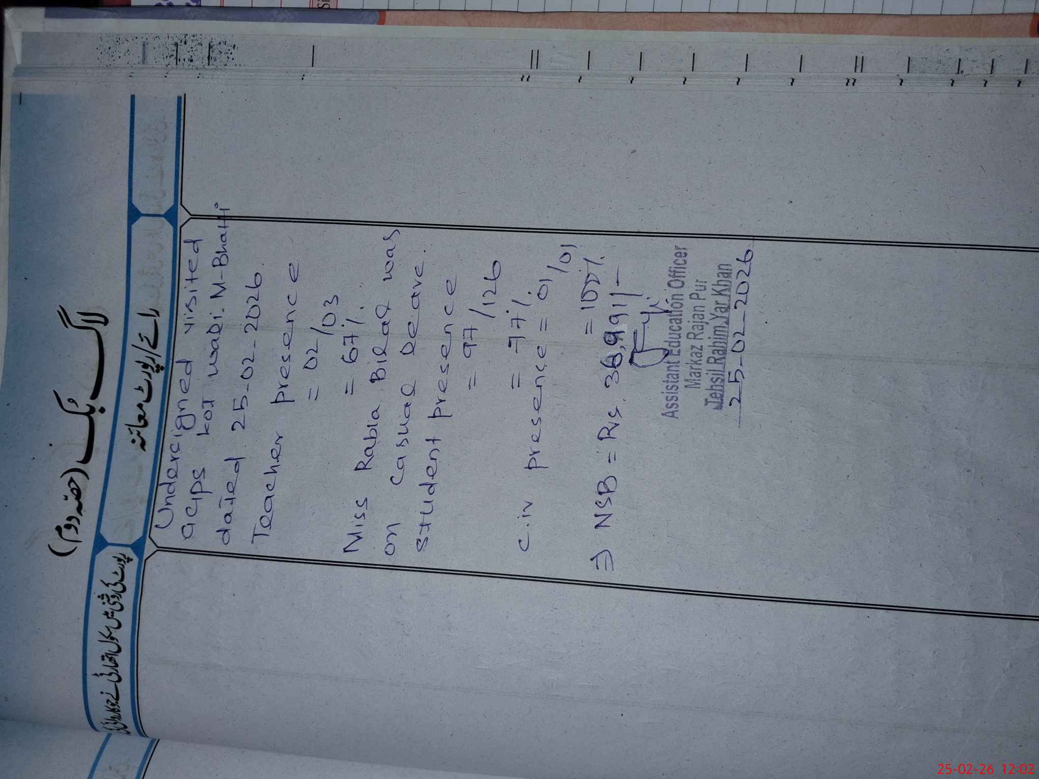 | Attendance Register | Head Teacher | MEA with School | Visit Proof |