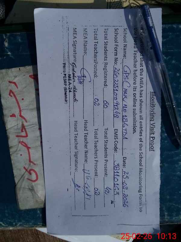 | EMIS Code: 38110163 | Name of School: GPS CHAK NO 186 TDA | |||