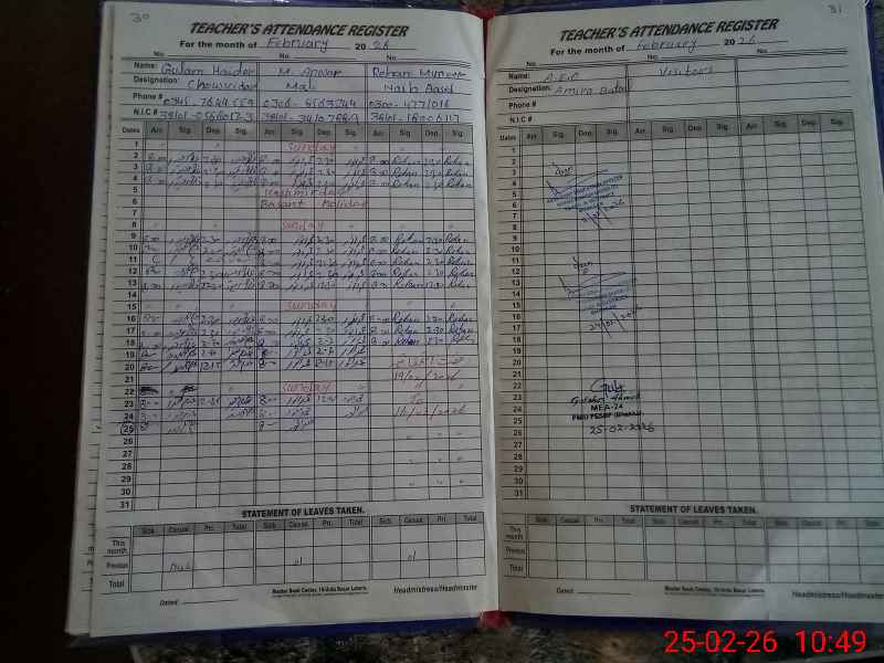 | Attendance Register | Head Teacher | MEA with School | Visit Proof |