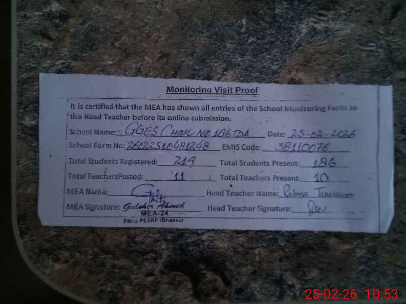 | EMIS Code: 38110076 | Name of School: GGES CHAK NO.186/TDA | |||