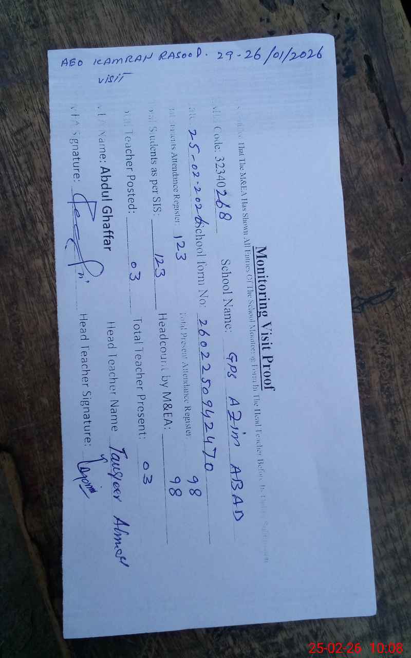 | EMIS Code: 32340268 | Name of School: GPS AZEEM ABAD | |||