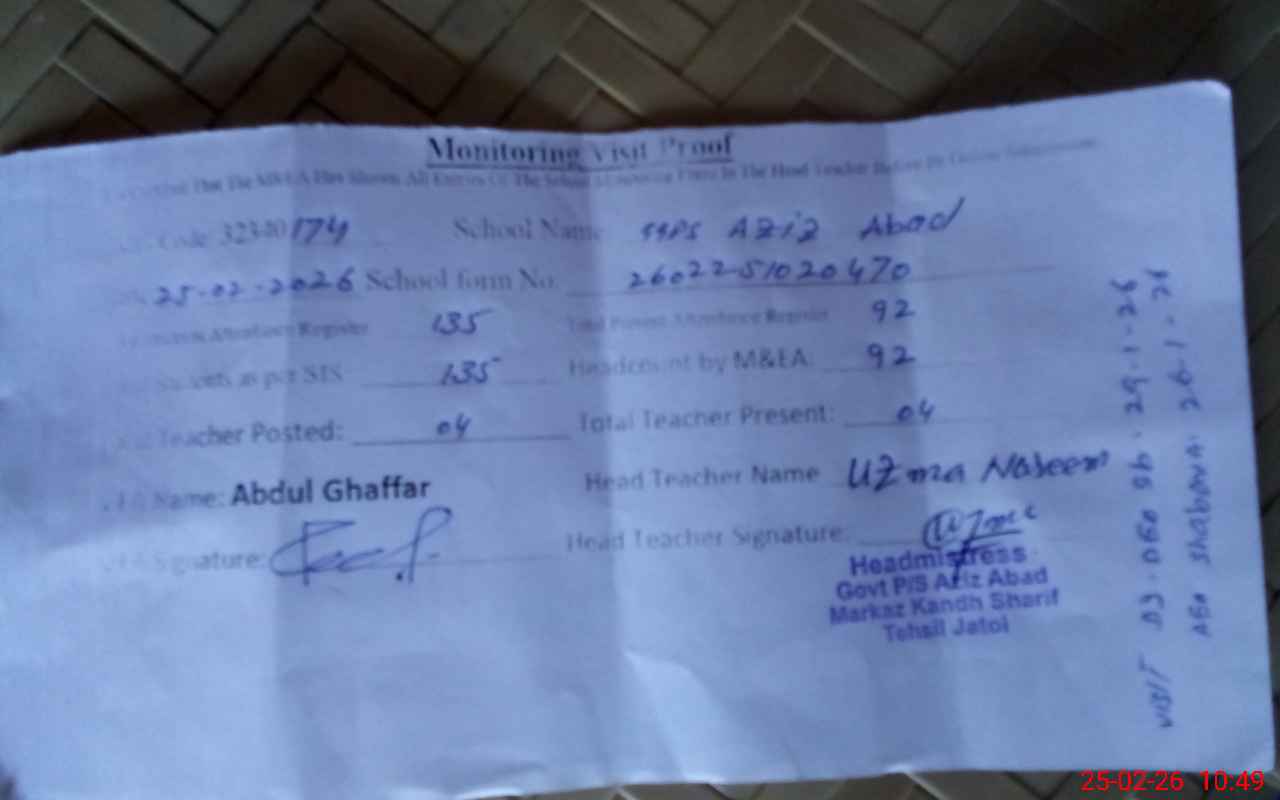 | EMIS Code: 32340174 | Name of School: GGPS AZIZ ABAD | |||