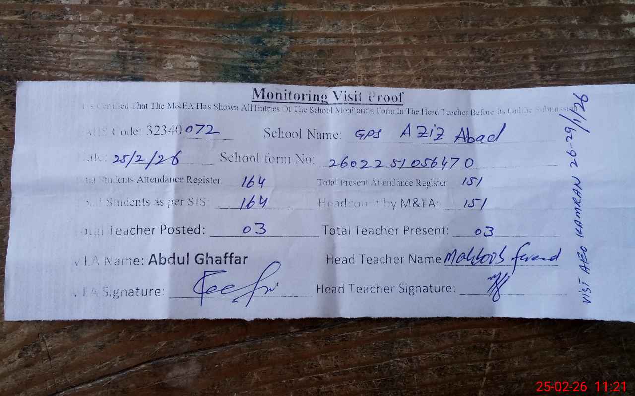 | EMIS Code: 32340072 | Name of School: GPS AZIZ ABAD | |||