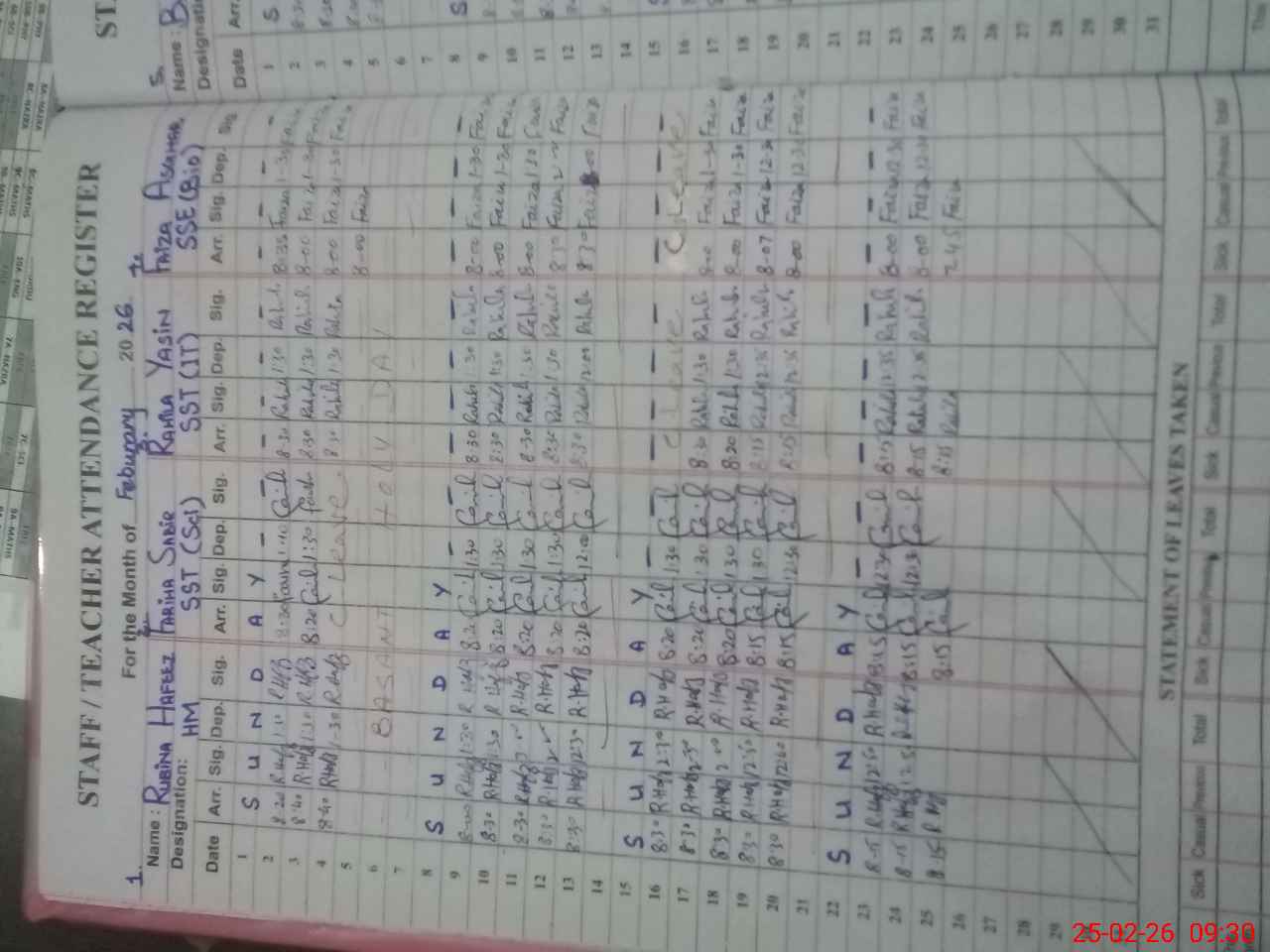 | CNIC | Full Name | Designation | R/C | Absence During Last Calender Month |