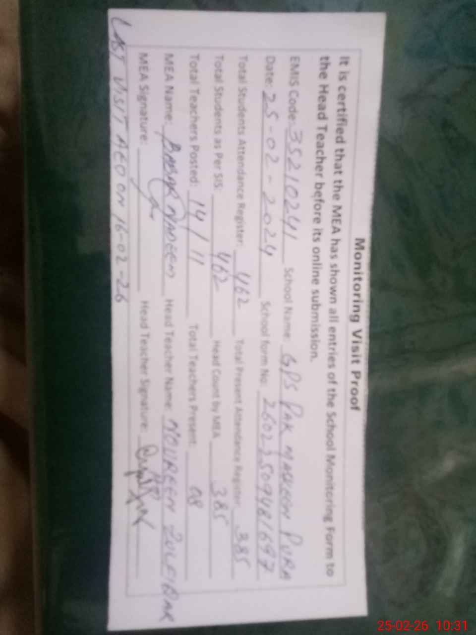 | EMIS Code: 35210241 | Name of School: GPS PAK MASKEEN PURA | |||