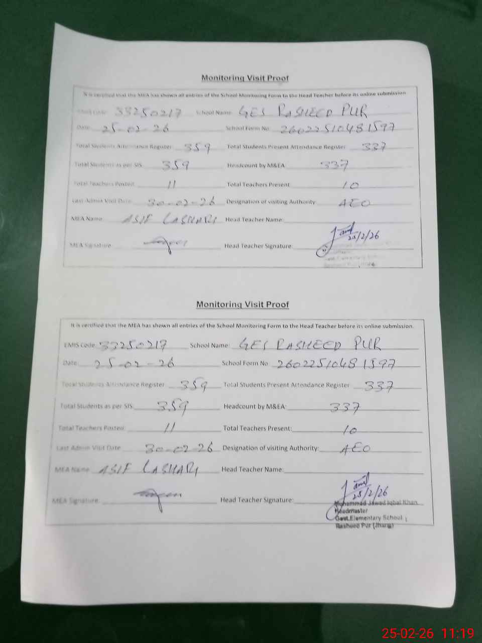 | EMIS Code: 33250217 | Name of School: GES RASHEED PUR | |||