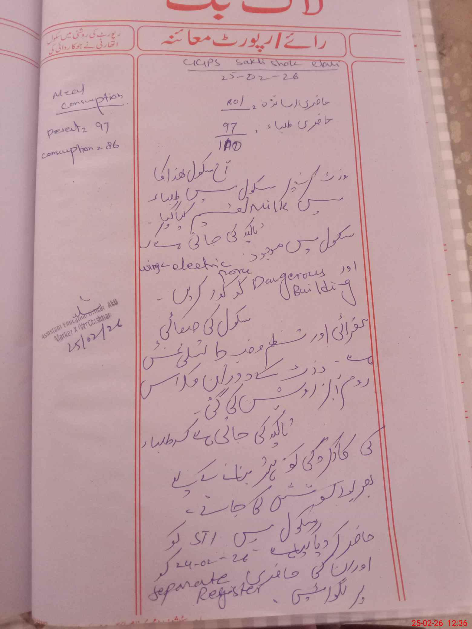| Certified that this School was Inspected by the Undersigned MEA/DMO Today and the Information Stated Above is as Per Record. | |||||