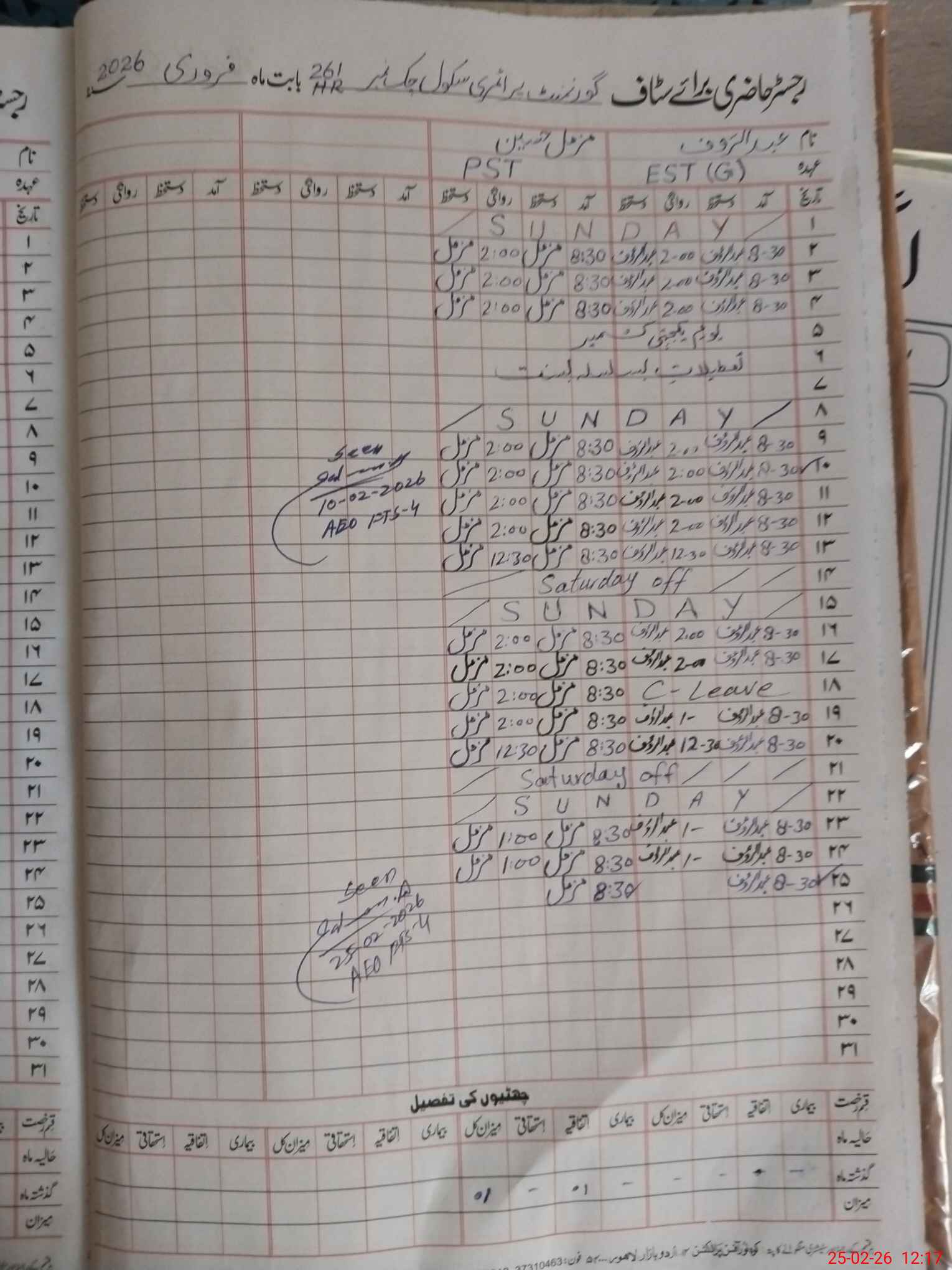 | Name: AB**** RA**** Designation: (School Headmaster's/Headmistress's) PST Phone/Cell Number: 03**** |