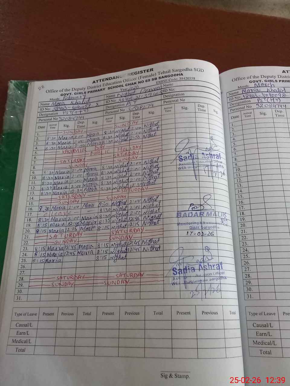 | Name: MA**** KH**** Designation: (School Headmaster's/Headmistress's) PST Phone/Cell Number: 03**** |