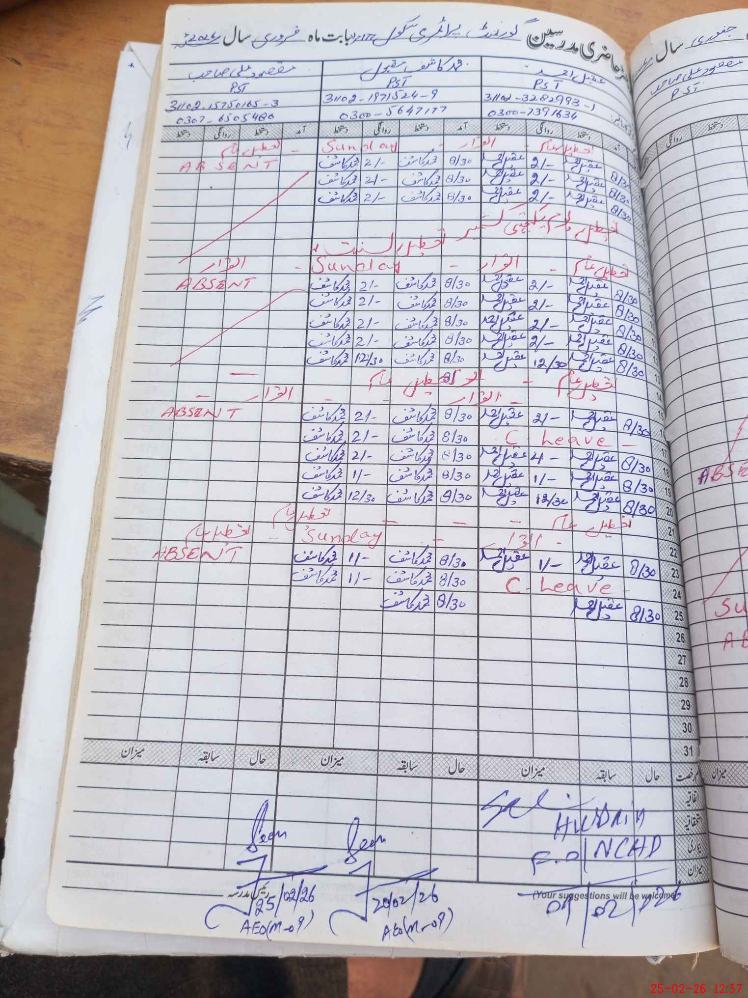 | 31**** | Ma**** Al**** | PST Science/Maths | Regular | 0 | 0 | 0 | 0 | 0 | 0 | 0 | 0 | 0 | Absent (Un-Authorized) |