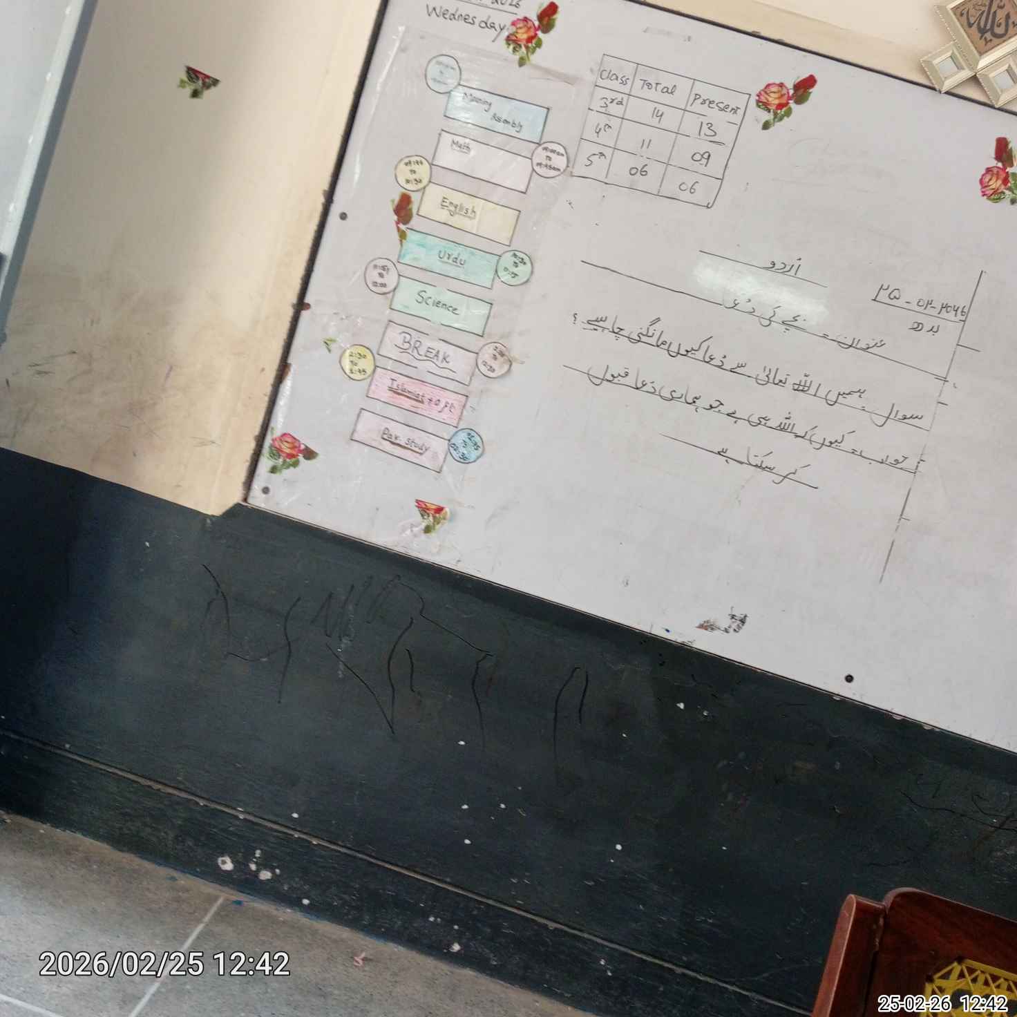 | Total no. of Classrooms: 6 No. of Classrooms Used for Teaching: 4 No. of Classrooms Storing Old Furniture, FTBs, etc: 0Comments if Any: 0 |