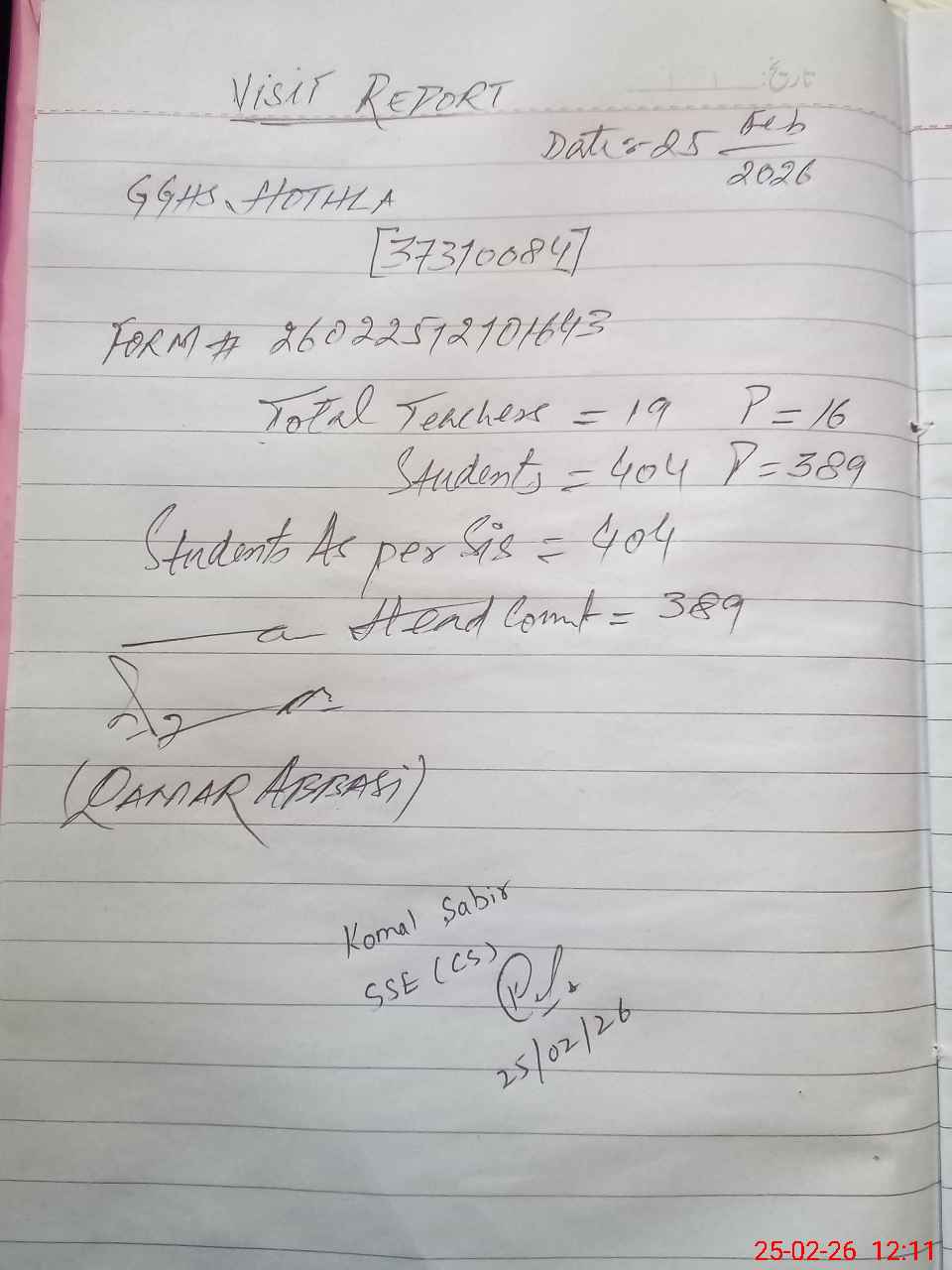 | EMIS Code: 37310084 | Name of School: GGHS HOTHLA | |||
