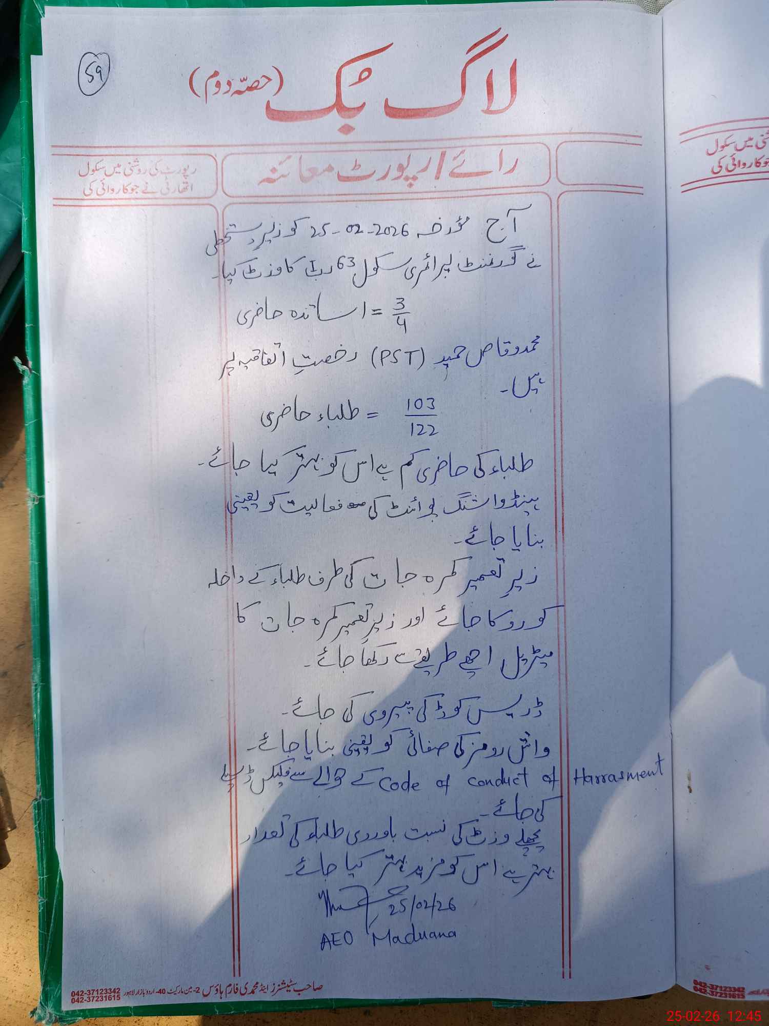 | Certified that this School was Inspected by the Undersigned MEA/DMO Today and the Information Stated Above is as Per Record. | |||||