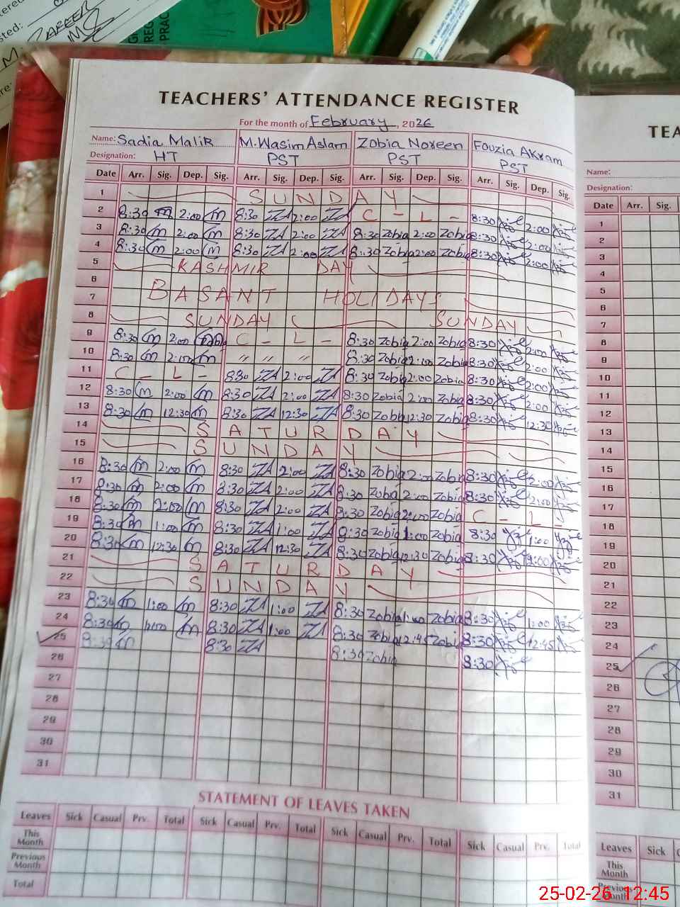 | Leave | Duty | Absent | Maternity | Medical | Ex- Pak |
