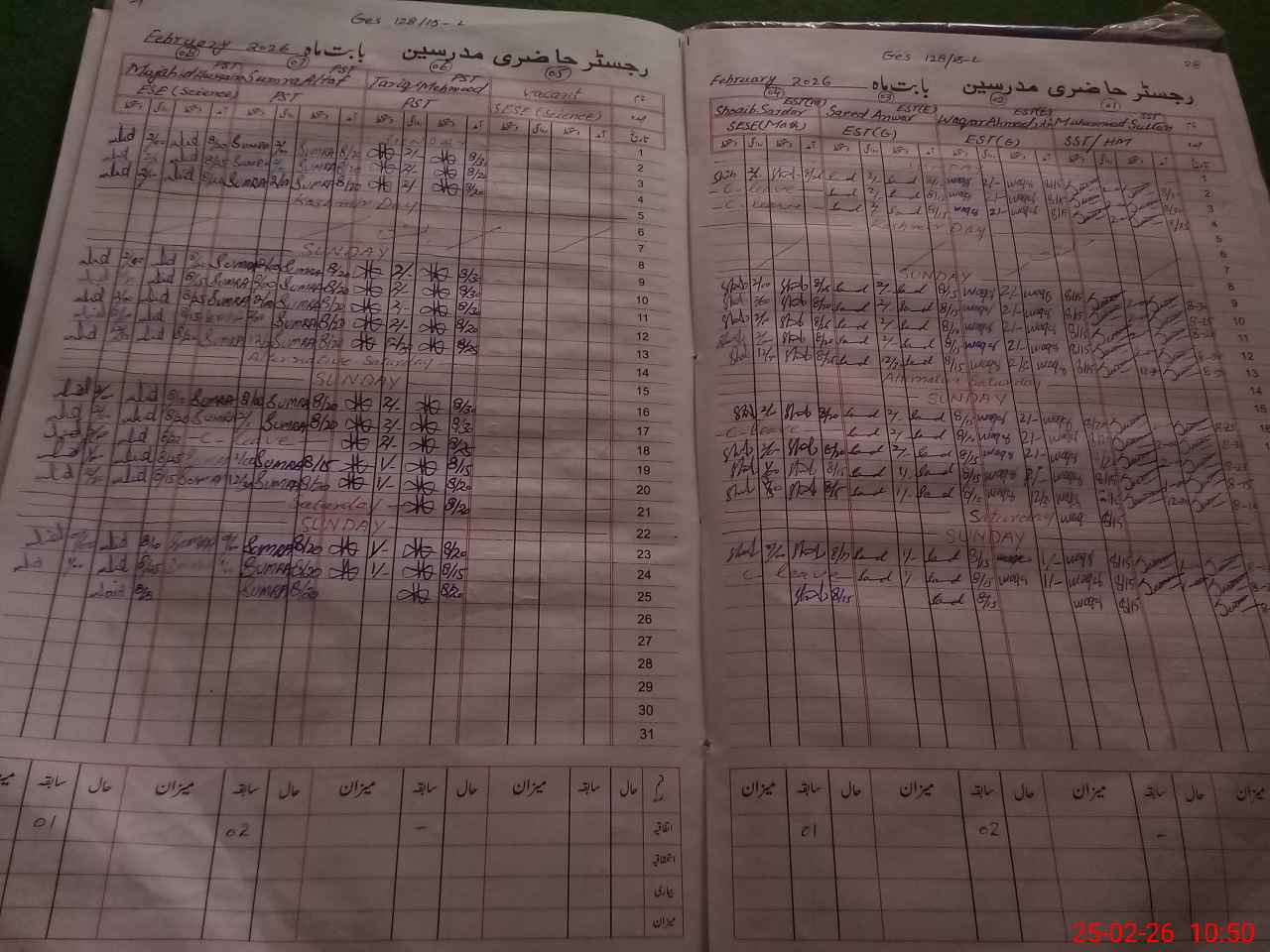 | CNIC | Full Name | Designation | R/C | Absence During Last Calender Month |