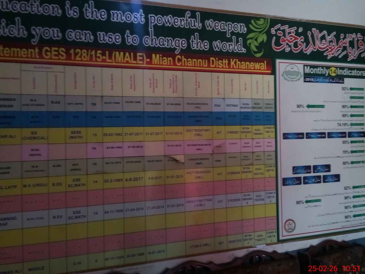 | EMIS Code: 36430198 | Name of School: GES 128/15-L, MIAN CHANNU | |||