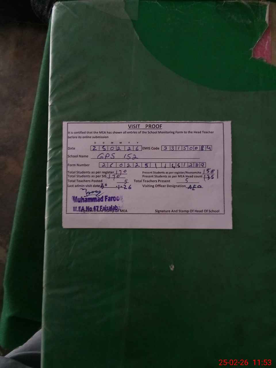| EMIS Code: 33150084 | Name of School: GPS 152 RB | |||