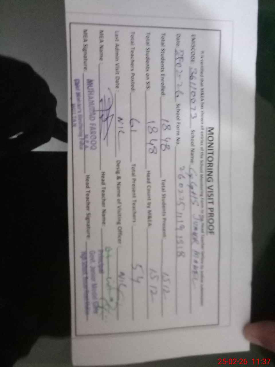| Certified that this School was Inspected by the Undersigned MEA/DMO Today and the Information Stated Above is as Per Record. | |||||