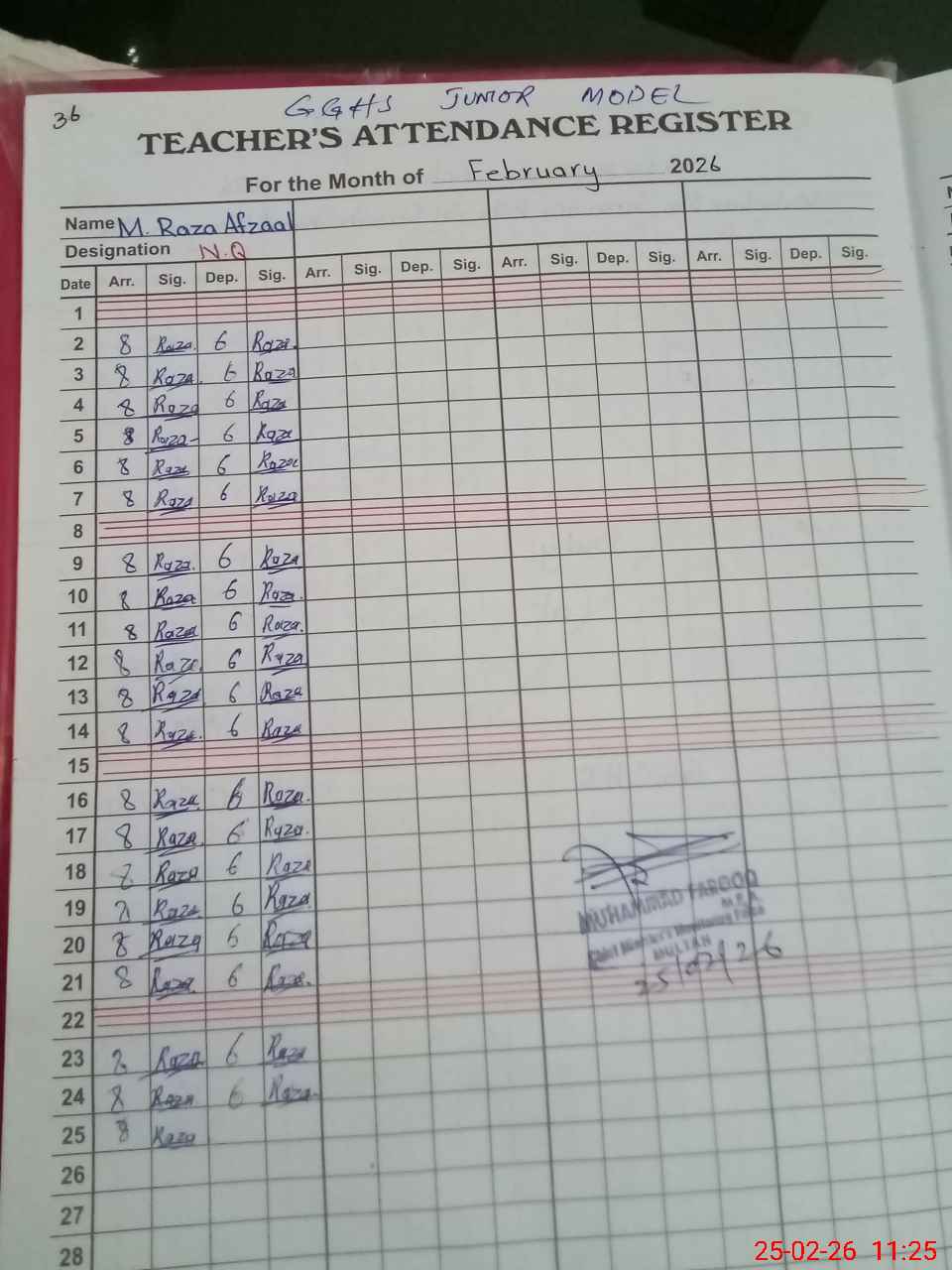 | EMIS Code: 36110073 | Name of School: GGHS JUNIOR MODEL CHUNGI NO. 6 BOSAN ROAD MULTAN | |||