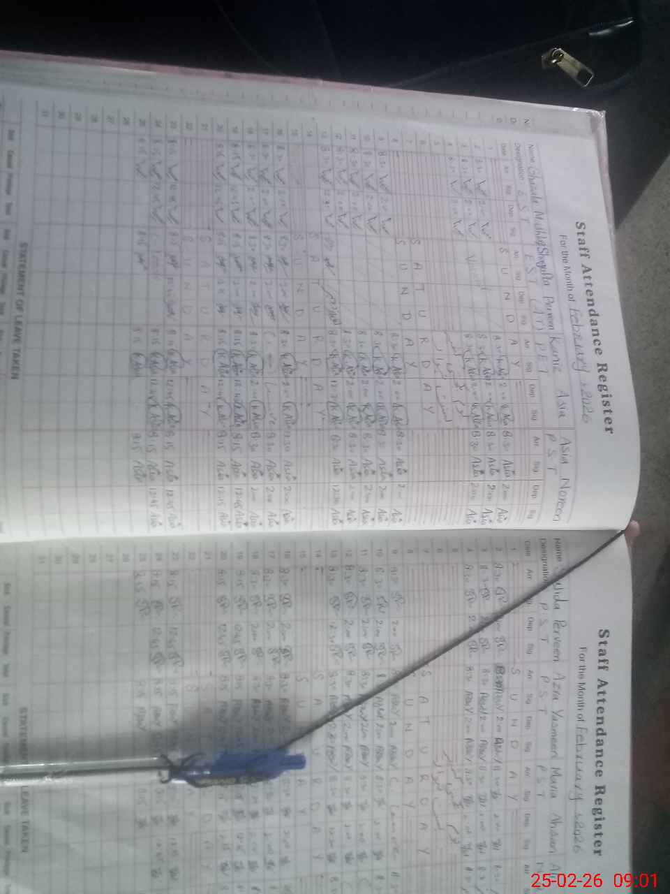 | Leave | Duty | Absent | Maternity | Medical | Ex- Pak |
