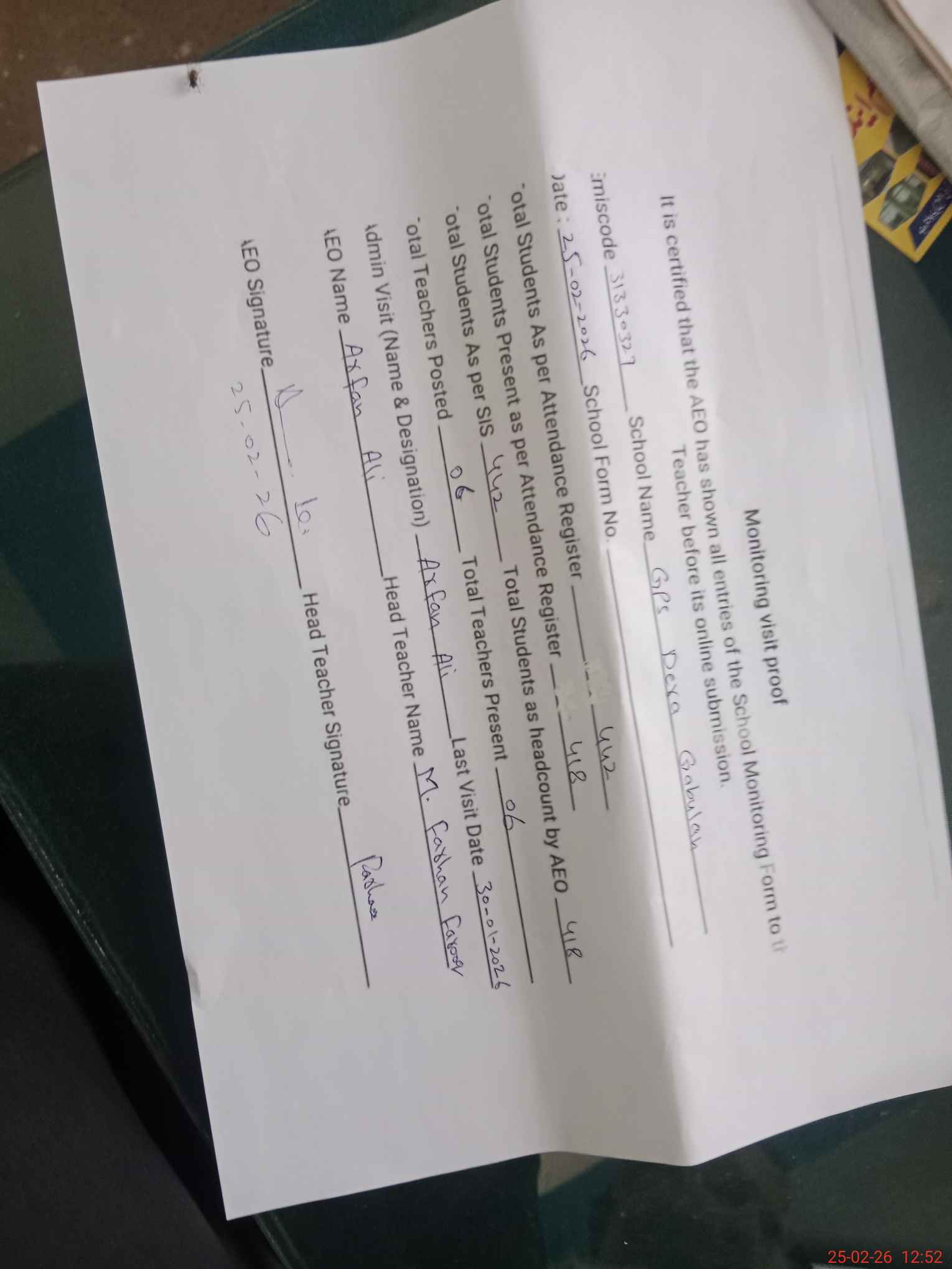 | Certified that this School was Inspected by the Undersigned MEA/DMO Today and the Information Stated Above is as Per Record. | |||||