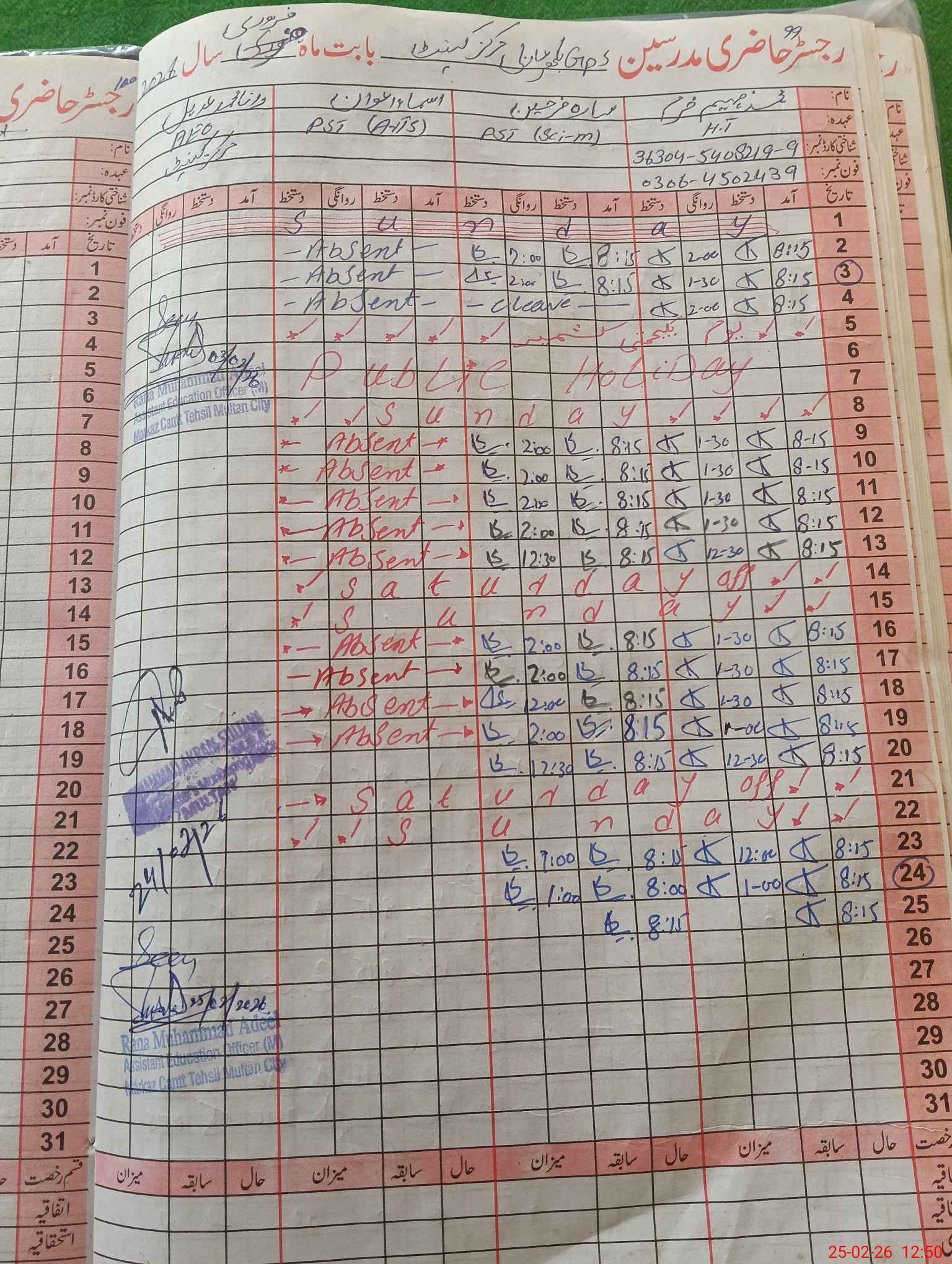 | Name: MFa**** Designation: (School Headmaster's/Headmistress's) HEADMASTER Phone/Cell Number: 03**** |