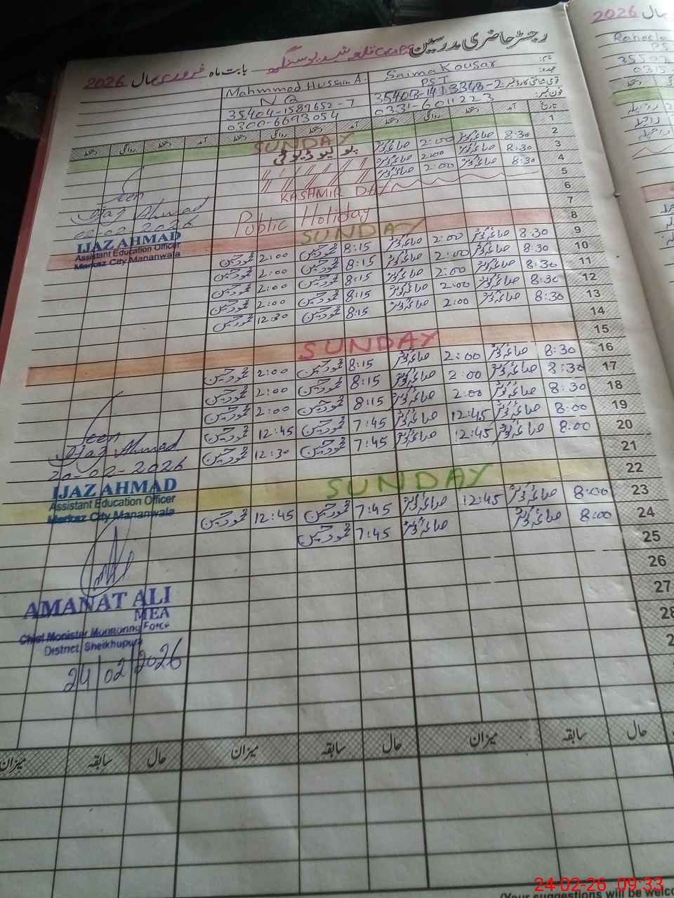 | Certified that this School was Inspected by the Undersigned MEA/DMO Today and the Information Stated Above is as Per Record. | |||||