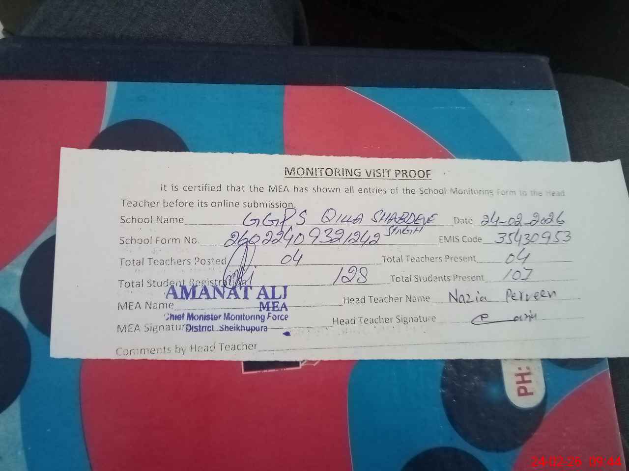 | EMIS Code: 35430953 | Name of School: GGPS QILA SHABDEV SINGH | |||