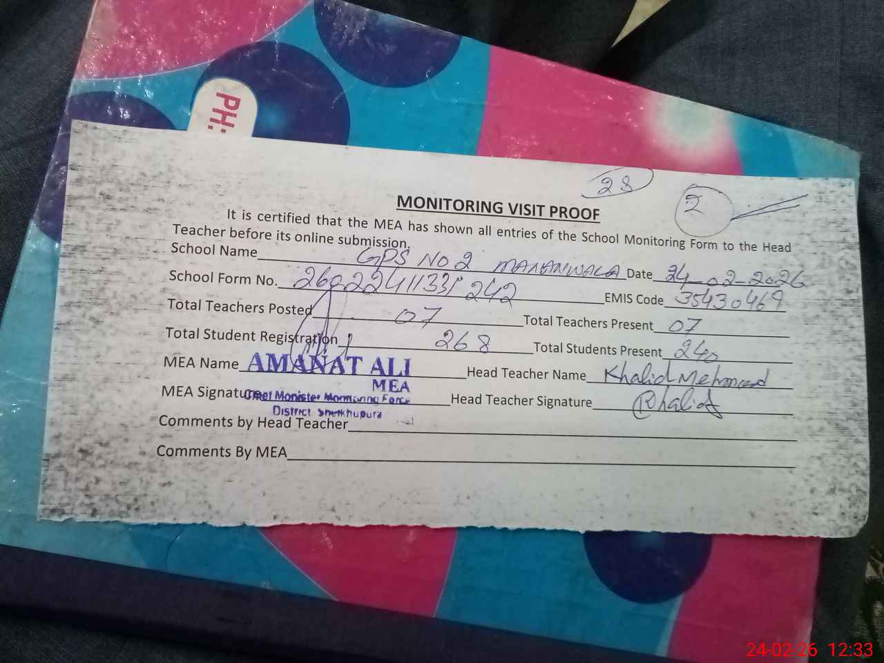 | EMIS Code: 35430469 | Name of School: GPS NO. 2 MANANWALA | |||