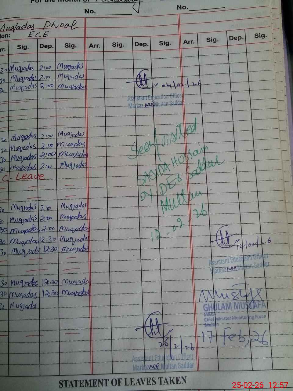 | District: MULTAN | Tehsil: MULTAN SADAR | Markaz: MAKHDOOM RASHEED - FEMALE | Level: Primary | |