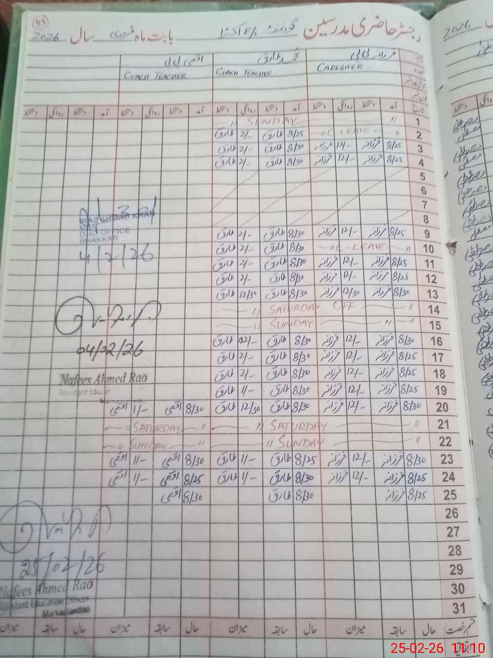 | CNIC | Full Name | Designation | R/C | Absence During Last Calender Month |