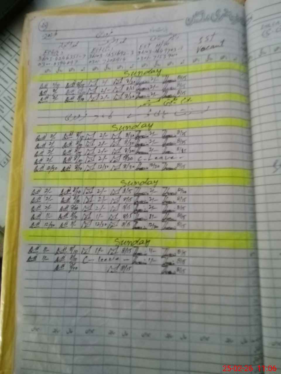 | CNIC | Full Name | Designation | R/C | Absence During Last Calender Month |