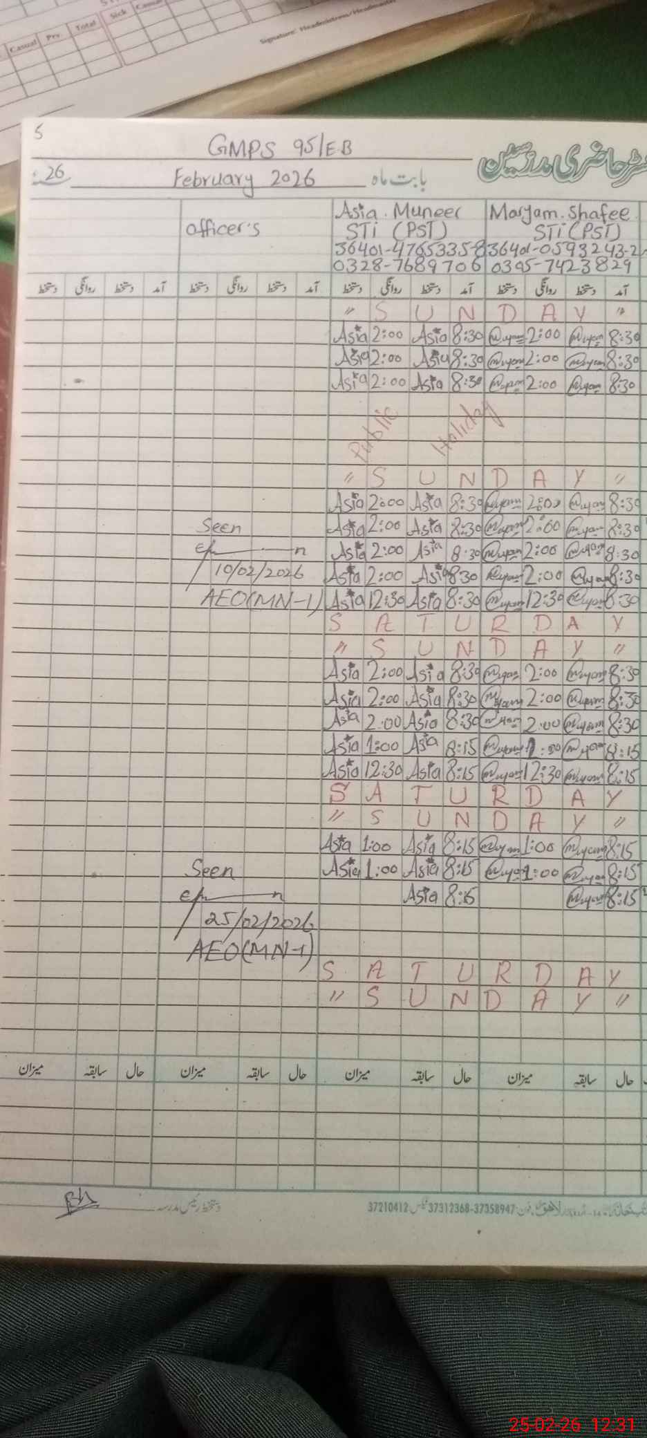 | Certified that this School was Inspected by the Undersigned MEA/DMO Today and the Information Stated Above is as Per Record. | |||||